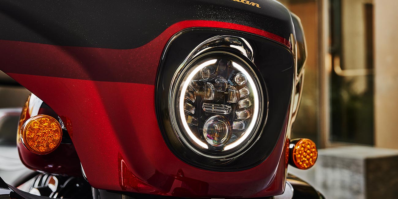 | di serie | Display da 7 pollici alimentato da RIDE COMMAND®; parabrezza elettrico; luci di marcia; interruttori retroilluminati a cubetti per autostrada; sedili H/C con cuciture pregiate; manopole riscaldate; pedane passeggero regolabili; 36,2 galloni di spazio; monitoraggio della pressione degli pneumatici; borse rigide e baule con chiusura a distanza; modalità di guida selezionabili; disattivazione del cilindro posteriore; ABS; cruise control; accensione senza chiave; impianto audio da 600 Watt con AM/FM, Bluetooth, USB, ingresso compatibile con smartphone e banda meteo; porta di ricarica da 12 V |